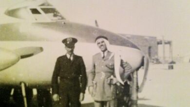 الكابتن فهد محمد العتيقي والكابتن محمد أبل في مطار النقرة سنة 1953م