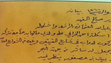 رسالة من سعود بن رشيد الى جابر المبارك وإشارة للفارس سيف العتيقي ومبارك الحجرف ١٩١٦م